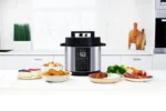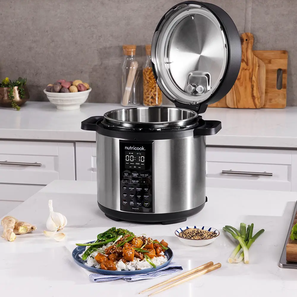 دستگاه زودپز برقی نوتریکوک sp320 از جمله جدیدترین دستگاه های پخت و پز چند منظوره نوتریکوک در سال 2025 میباشد. این محصول با گنجایش و امکاناتی تقریبا مشابه به sp204 طراحی شده اما از جنبه هایی دارای قابلیت های پیشرفته تر و سیستم هوشمندتری میباشد. وجود درب هوشمند و نمایش شرایط دقیق پخت بر روی نمایشگر دیجیتال، از جمله امکانات قابل توجه و ارتقا یافته مولتی کوکر نوتریکوک 320 به نسبت سری های قبلی است.