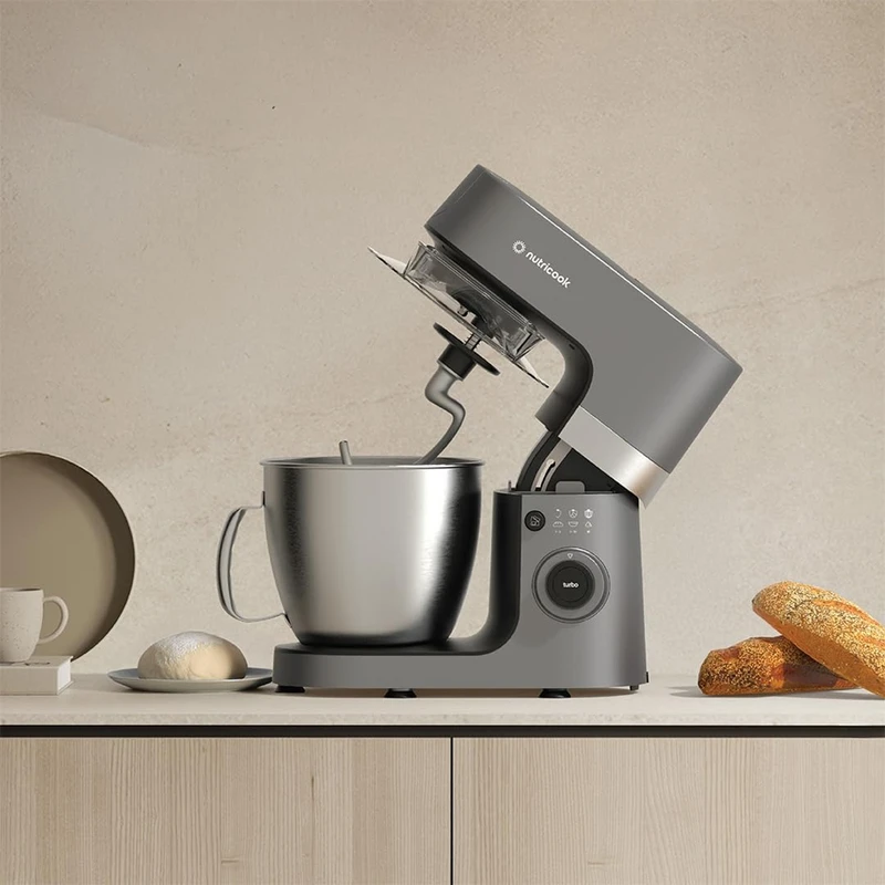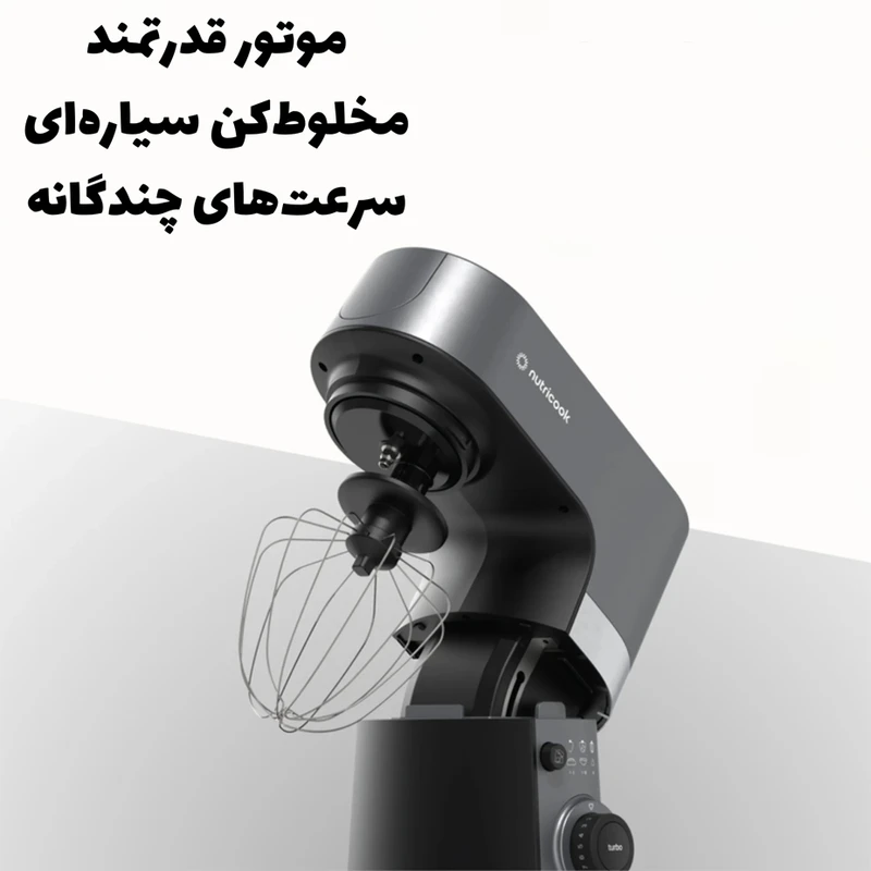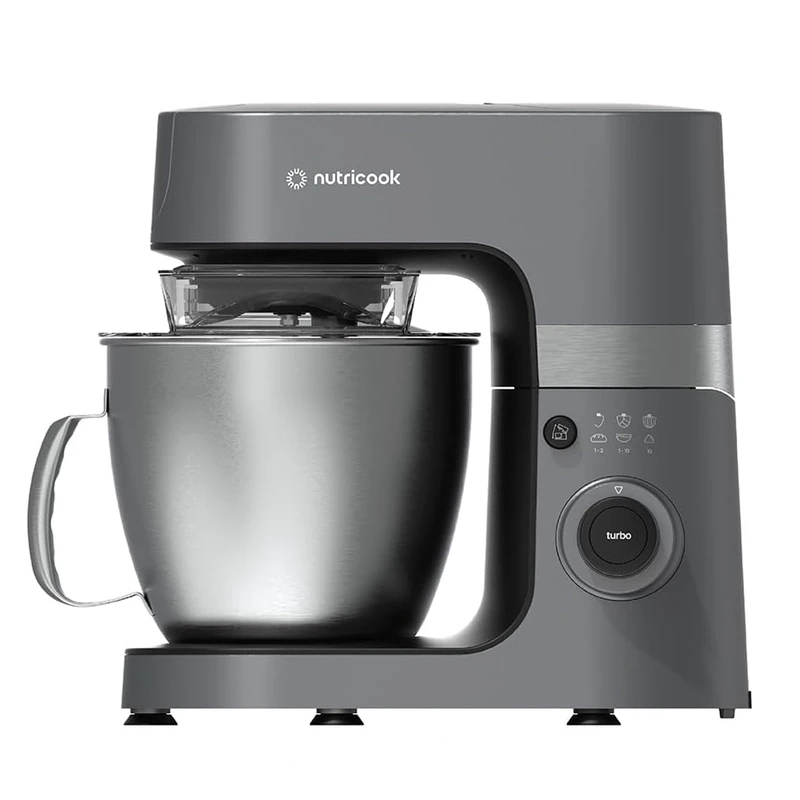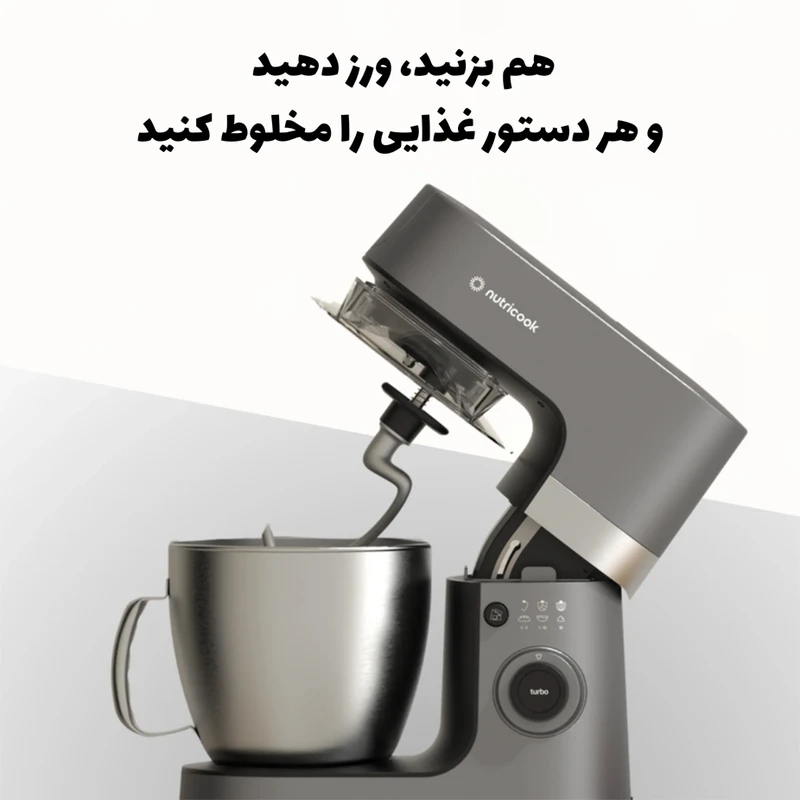 همزنهای کاسهدار حرفهای امروز یکی از پایهترین وسایل در آشپزخانه حرفهای و نیمهحرفهای هستند؛ از تهیه خمیر نان و شیرینی تا همزدن خامه، مرینت و مایعات غلیظ. همزن نوتریکوک مدل SM330 در ردهی همزنهای ایستاده (stand mixer) قرار میگیرد و با هدف پوشش نیازهای خانگی پیشرفته، کافیشاپها و قنادیهای کوچک طراحی شده است. این دستگاه ترکیبی از قدرت موتور بالا، ظرفیت مناسب کاسه و حرکت «پلانِتِری» (Planetary) برای دستیابی به اختلاط یکنواخت و صرفهجویی در زمان را ارائه میدهد. این دستگاه ظاهری مستحکم و صنعتی-مدرن دارد که متناسب با فضاهای حرفهای ساخته شده است. بدنه دستگاه از متریال مقاوم (ترکیبی از پلاستیک فشرده با بدنه تقویتشده و پایههای ضدلغزش) تشکیل شده تا در حین کار با خمیرهای سنگین لرزش به حداقل برسد. کاسه از استیل ضدزنگ ساخته شده که علاوه بر دوام، شستوشو و نگهداری را آسان میکند. دسته و مکانیزم قفل کاسه محکم طراحی شدهاند تا در حین کار با بار بالا ایمنی و پایداری لازم فراهم شود. مکانیزم پلانِتری (Planetary Mixing): این مکانیزم باعث میشود همزن علاوه بر چرخش ابزار، حول محور خود نیز حرکت کند؛ نتیجهی آن اختلاط یکدست حتی در گوشههای کاسه و سرعت بالاتر در رسیدن به بافت مطلوب است. موتور پرقدرت با محافظ حرارتی: موتور ۱۳۰۰ واتی بهگونهای طراحی شده که توانِ لازم برای خمیرهای سنگین را فراهم آورد و در عین حال با سیستم محافظ حرارتی از سوختن جلوگیری کند. کنترل سرعت انعطافپذیر: امکان تنظیم دقیق سرعت (از هم زدن ملایم تا همزدن تند برای کرم/خامه) به کاربر اجازه میدهد تمام دستورها را با دقت اجرا کند. پایداری و ایمنی: پایههای ضدلغزش، قفل کاسه و ساختار محکم بدنه از پرت شدن یا حرکت دستگاه در ولومهای بالا جلوگیری میکند. در عملیاتی مانند ورز دادن خمیر نان، همزدن خمیر کیک و تهیه مرینگ یا خامه، همزن نوتریکوک عملکرد قابلقبولی از خود نشان میدهد: موتور پرقدرت بهسرعت مخلوط را یکپارچه میکند و کاسه ۶.۳ لیتری اجازه میدهد حجمهای بالا را یکجا تهیه کنید. برای تهیه خمیرهای سنگین (مثل خمیر نان یا پیراشکی) قلاب خمیر عملکرد خوبی دارد و گرمای تولیدی موتور در محدوده قابل قبول بوده و با استفاده از پالسهای کوتاه میتوان از گرم شدن بیش از حد مواد جلوگیری کرد.