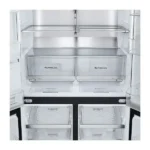 یخچال ساید بای ساید ال جی مدل x24 دارای ساختار ۵ درب است. این طراحی خاص شامل سه درب بالا برای یخچال و دو درب پایین برای فریزر است.